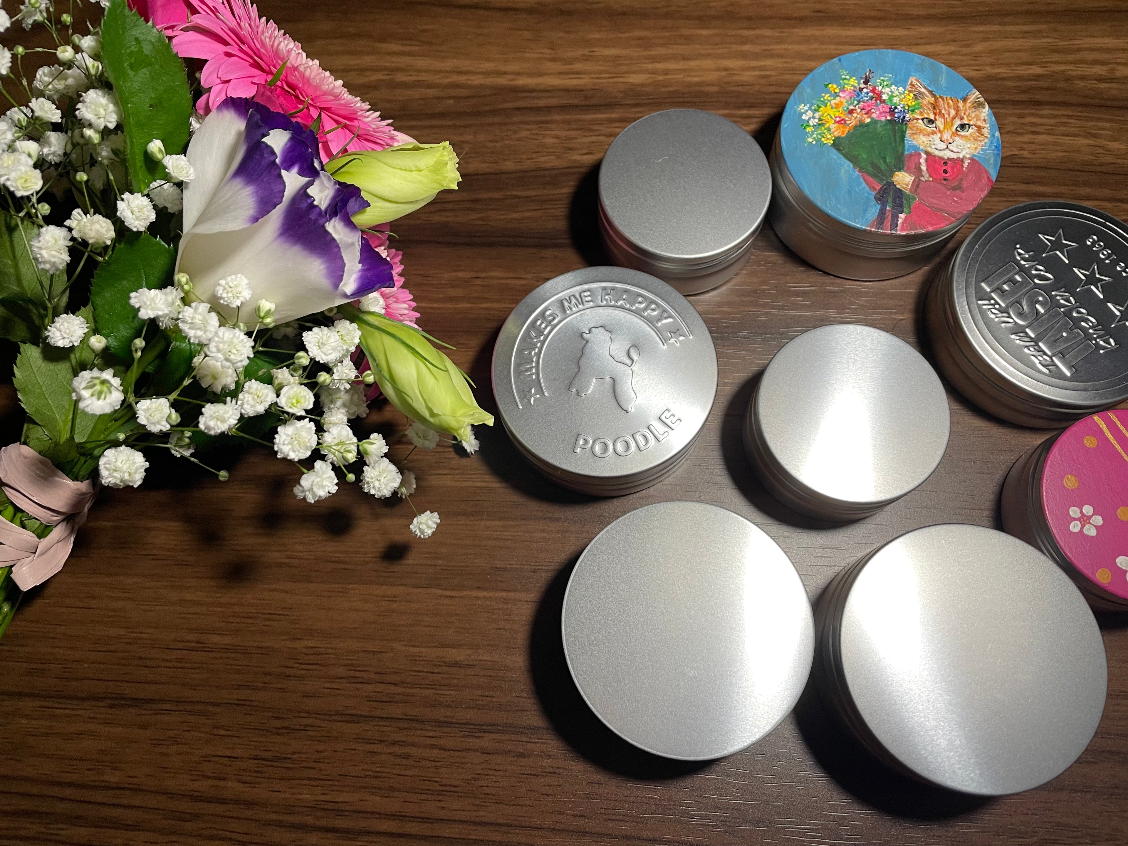 [カスタム]オリジナル刻印(エンボス)のアルミ丸缶 直径62mm×高さ27㎜