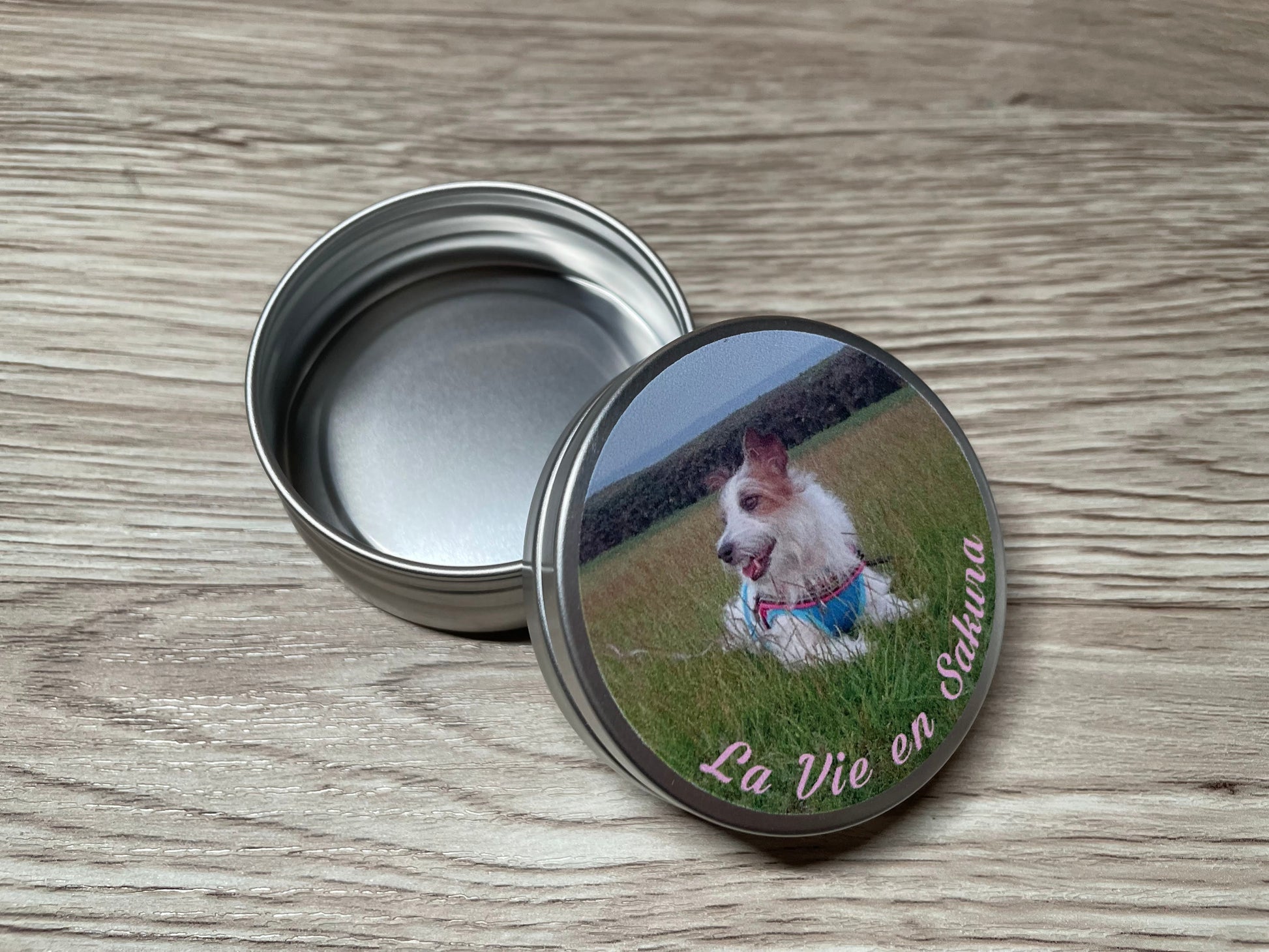 こちらはご自身のお気に入りの写真や画像をアルミ丸缶のフタ(天板)に印刷するサービスです。